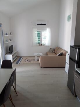 Ferienwohnung bietet Platz für 4 Gäste. Die Betten sind in Schlafzimmern, die es 1 gibt, und in Wohnzimmer, innerhalb einer Gesamtfläche von 33m2, angeordnet. Die Gäste haben eine eigene Terrasse zur Verfügung, auf der sie in warmen Sommernächten genießen können. Es ist erlaubt, Speisen auf dem Gemeinschafts-Grill vorzubereiten.