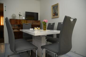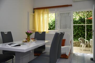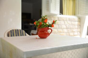 Haus bietet Platz für 6 Gäste. Die Betten sind in Schlafzimmern, die es 2 gibt, und in Wohnzimmer, innerhalb einer Gesamtfläche von 57m2, angeordnet. Die Gäste haben eine eigene Terrasse zur Verfügung, auf der sie in warmen Sommernächten genießen können.