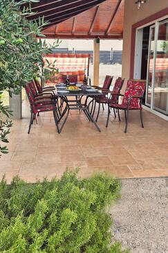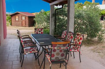 Haus bietet Platz für 8 Gäste. Die Betten sind in Schlafzimmern, die es 5 gibt, innerhalb einer Gesamtfläche von 139m2, angeordnet. Die Gäste haben eine eigene Terrasse zur Verfügung, auf der sie in warmen Sommernächten genießen können. Es ist erlaubt, Speisen auf dem Gemeinschafts-Grill vorzubereiten.