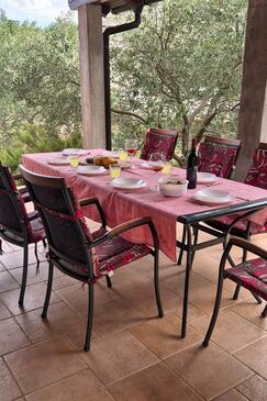Haus bietet Platz für 8 Gäste. Die Betten sind in Schlafzimmern, die es 5 gibt, innerhalb einer Gesamtfläche von 139m2, angeordnet. Die Gäste haben eine eigene Terrasse zur Verfügung, auf der sie in warmen Sommernächten genießen können. Es ist erlaubt, Speisen auf dem Gemeinschafts-Grill vorzubereiten.