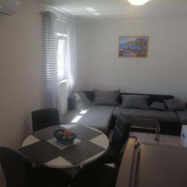 Haus bietet Platz für 6 Gäste. Die Betten sind in Schlafzimmern, die es 2 gibt, und in Wohnzimmer, innerhalb einer Gesamtfläche von 43m2, angeordnet. Die Gäste haben eine eigene Terrasse zur Verfügung, auf der sie in warmen Sommernächten genießen können. Für vollen Genuss und Entspannung gibt es einen privaten Grill für Gäste dieser Unterkunft. In der Unterkunftseinheit besteht die Möglichkeit des Mitbringens von Haustieren gegen Aufpreis.
