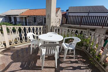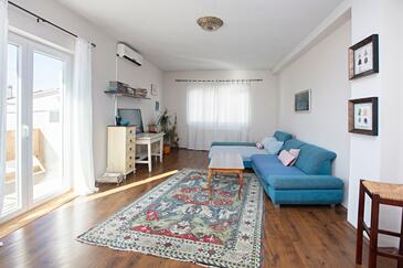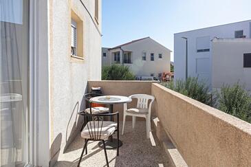 Ferienwohnung bietet Platz für 8 Gäste. Die Betten sind in Schlafzimmern, die es 3 gibt, und in Wohnzimmer, innerhalb einer Gesamtfläche von 81m2, angeordnet. Die Gäste haben eine eigene Terrasse zur Verfügung, auf der sie in warmen Sommernächten genießen können. Es ist erlaubt, Speisen auf dem Gemeinschafts-Grill vorzubereiten. In der Unterkunftseinheit besteht die Möglichkeit des Mitbringens von Haustieren gegen Aufpreis.
