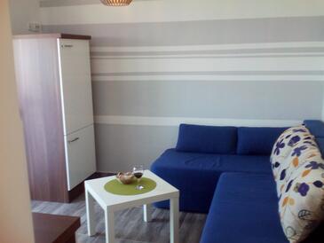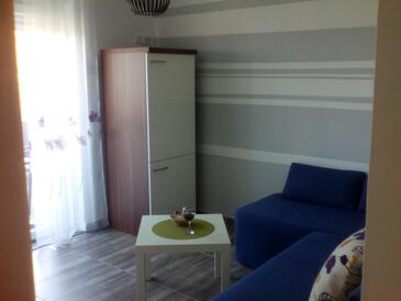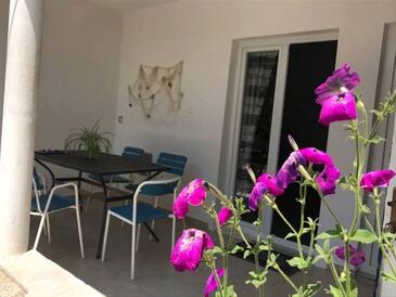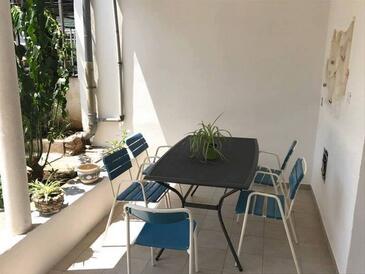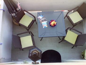 Ferienwohnung bietet Platz für 5 Gäste. Die Betten sind in Schlafzimmern, die es 2 gibt, innerhalb einer Gesamtfläche von 33m2, angeordnet. Die Gäste haben eine eigene Terrasse zur Verfügung, auf der sie in warmen Sommernächten genießen können. Es ist erlaubt, Speisen auf dem Gemeinschafts-Grill vorzubereiten.