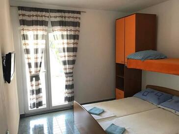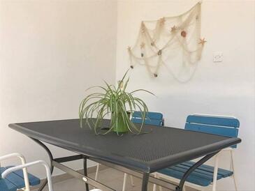 Ferienwohnung bietet Platz für 5 Gäste. Die Betten sind in Schlafzimmern, die es 2 gibt, innerhalb einer Gesamtfläche von 33m2, angeordnet. Die Gäste haben eine eigene Terrasse zur Verfügung, auf der sie in warmen Sommernächten genießen können. Es ist erlaubt, Speisen auf dem Gemeinschafts-Grill vorzubereiten.