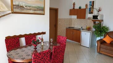 Ferienwohnung bietet Platz für 4 Gäste. Die Betten sind in Schlafzimmern, die es 1 gibt, und in Wohnzimmer, innerhalb einer Gesamtfläche von 43m2, angeordnet. Die Gäste haben eine eigene Terrasse zur Verfügung, auf der sie in warmen Sommernächten genießen können.