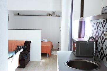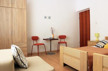 Ferienwohnung bietet Platz für 4 Gäste. Die Betten sind in Schlafzimmern, die es 1 gibt, und in Wohnzimmer, innerhalb einer Gesamtfläche von 33m2, angeordnet. Die Gäste haben eine eigene Terrasse zur Verfügung, auf der sie in warmen Sommernächten genießen können. Es ist erlaubt, Speisen auf dem Gemeinschafts-Grill vorzubereiten.
