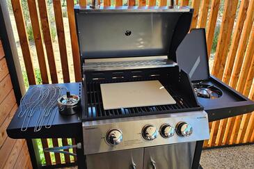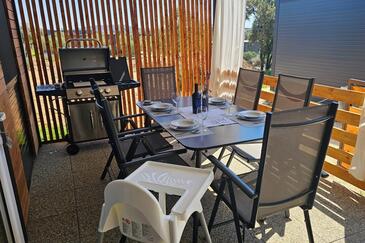 Ferienwohnung bietet Platz für 6 Gäste. Die Betten sind in Schlafzimmern, die es 2 gibt, und in Wohnzimmer, innerhalb einer Gesamtfläche von 24m2, angeordnet. Die Gäste haben eine eigene Terrasse zur Verfügung, auf der sie in warmen Sommernächten genießen können. Es ist erlaubt, Speisen auf dem Gemeinschafts-Grill vorzubereiten. Während ihres Aufenthalts können Gäste das gemeinsam zur Nutzung stehende Schwimmbad benutzen. In der Unterkunftseinheit besteht die Möglichkeit des Mitbringens von Haustieren gegen Aufpreis.