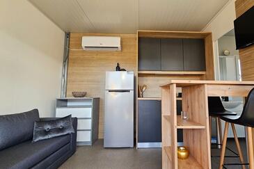 Ferienwohnung bietet Platz für 6 Gäste. Die Betten sind in Schlafzimmern, die es 2 gibt, und in Wohnzimmer, innerhalb einer Gesamtfläche von 24m2, angeordnet. Die Gäste haben eine eigene Terrasse zur Verfügung, auf der sie in warmen Sommernächten genießen können. Es ist erlaubt, Speisen auf dem Gemeinschafts-Grill vorzubereiten. Während ihres Aufenthalts können Gäste das gemeinsam zur Nutzung stehende Schwimmbad benutzen. In der Unterkunftseinheit besteht die Möglichkeit des Mitbringens von Haustieren gegen Aufpreis.