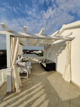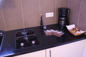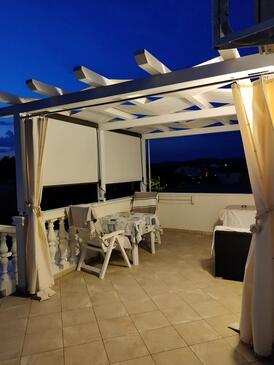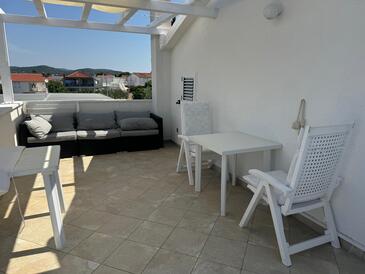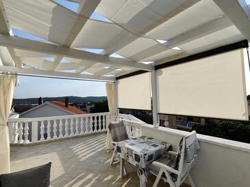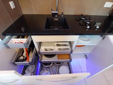 Ferienwohnung bietet Platz für 6 Gäste. Die Betten sind in Schlafzimmern, die es 3 gibt, innerhalb einer Gesamtfläche von 66m2, angeordnet. Die Gäste haben eine eigene Terrasse zur Verfügung, auf der sie in warmen Sommernächten genießen können. Es ist erlaubt, Speisen auf dem Gemeinschafts-Grill vorzubereiten.