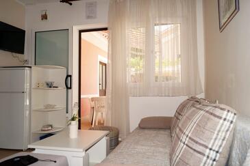 Ferienwohnung bietet Platz für 4 Gäste. Die Betten sind in Schlafzimmern, die es 2 gibt, innerhalb einer Gesamtfläche von 35m2, angeordnet. Die Gäste haben eine eigene Terrasse zur Verfügung, auf der sie in warmen Sommernächten genießen können. Das Apartment bietet Meerblick. Es ist erlaubt, Speisen auf dem Gemeinschafts-Grill vorzubereiten.
