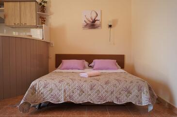 Ferienwohnung bietet Platz für 4 Gäste. Die Betten sind in Schlafzimmern, die es 2 gibt, innerhalb einer Gesamtfläche von 35m2, angeordnet. Die Gäste haben eine eigene Terrasse zur Verfügung, auf der sie in warmen Sommernächten genießen können. Das Apartment bietet Meerblick. Es ist erlaubt, Speisen auf dem Gemeinschafts-Grill vorzubereiten.