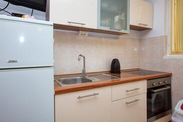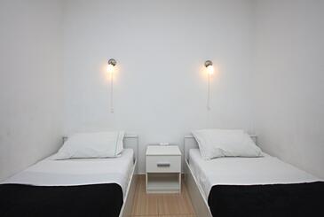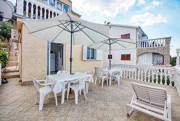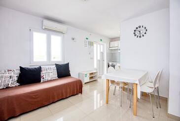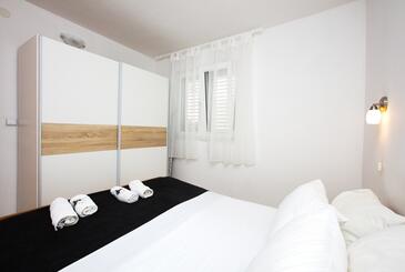 Ferienwohnung bietet Platz für 8 Gäste. Die Betten sind in Schlafzimmern, die es 3 gibt, und in Wohnzimmer, innerhalb einer Gesamtfläche von 76m2, angeordnet. Die Gäste haben eine eigene Terrasse zur Verfügung, auf der sie in warmen Sommernächten genießen können. Das Apartment bietet Meerblick. Es ist erlaubt, Speisen auf dem Gemeinschafts-Grill vorzubereiten.