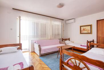 Ferienwohnung bietet Platz für 6 Gäste. Die Betten sind in Schlafzimmern, die es 2 gibt, innerhalb einer Gesamtfläche von 51m2, angeordnet. Die Gäste haben einen eigenen Balkon zur Verfügung, auf der sie in warmen Sommernächten genießen können. Das Apartment bietet Meerblick. Für vollen Genuss und Entspannung gibt es einen privaten Grill für Gäste dieser Unterkunft.