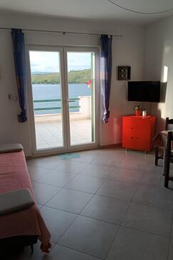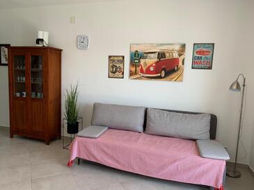 Ferienwohnung bietet Platz für 4 Gäste. Die Betten sind in Schlafzimmern, die es 2 gibt, innerhalb einer Gesamtfläche von 71m2, angeordnet. Die Gäste haben eine eigene Terrasse zur Verfügung, auf der sie in warmen Sommernächten genießen können. Das Apartment bietet Meerblick. Es ist erlaubt, Speisen auf dem Gemeinschafts-Grill vorzubereiten.