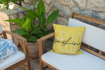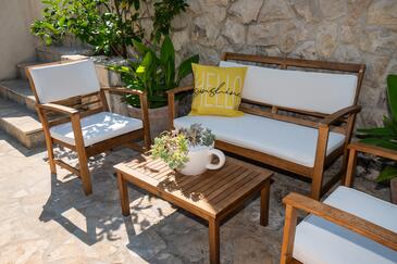 Ferienwohnung bietet Platz für 4 Gäste. Die Betten sind in Schlafzimmern, die es 1 gibt, und in Wohnzimmer, innerhalb einer Gesamtfläche von 50m2, angeordnet. Die Gäste haben eine eigene Terrasse zur Verfügung, auf der sie in warmen Sommernächten genießen können. Das Apartment bietet Meerblick. Es ist erlaubt, Speisen auf dem Gemeinschafts-Grill vorzubereiten.