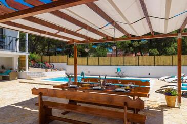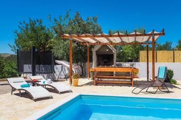 Haus bietet Platz für 7 Gäste. Die Betten sind in Schlafzimmern, die es 3 gibt, und in Wohnzimmer, innerhalb einer Gesamtfläche von 86m2, angeordnet. Die Gäste haben eine eigene Terrasse zur Verfügung, auf der sie in warmen Sommernächten genießen können. Für vollen Genuss und Entspannung gibt es einen privaten Grill für Gäste dieser Unterkunft. Während ihres Aufenthalts können Gäste das gemeinsam zur Nutzung stehende Schwimmbad benutzen. In der Unterkunftseinheit besteht die Möglichkeit des Mitbringens von Haustieren gegen Aufpreis. Unterkunftseinheit hat Räume, die von dem Rest der Einheit abgetrennt werden.