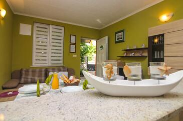Ferienwohnung bietet Platz für 4 Gäste. Die Betten sind in Schlafzimmern, die es 1 gibt, und in Wohnzimmer, innerhalb einer Gesamtfläche von 48m2, angeordnet. Die Gäste haben eine eigene Terrasse zur Verfügung, auf der sie in warmen Sommernächten genießen können. Es ist erlaubt, Speisen auf dem Gemeinschafts-Grill vorzubereiten.