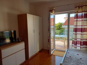 Ferienwohnung bietet Platz für 6 Gäste. Die Betten sind in Schlafzimmern, die es 3 gibt, innerhalb einer Gesamtfläche von 55m2, angeordnet. Die Gäste haben eine eigene Terrasse zur Verfügung, auf der sie in warmen Sommernächten genießen können. Das Apartment bietet Meerblick. Es ist erlaubt, Speisen auf dem Gemeinschafts-Grill vorzubereiten.