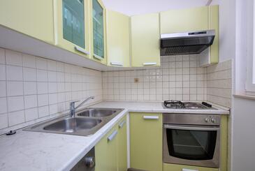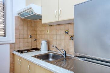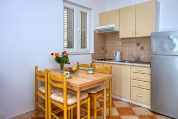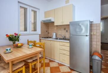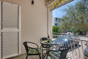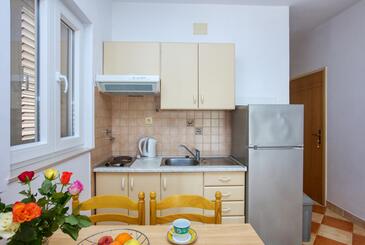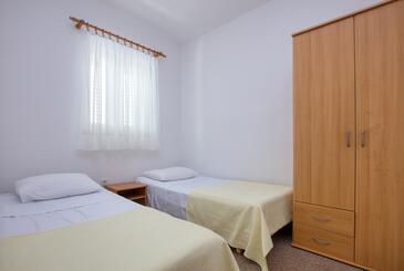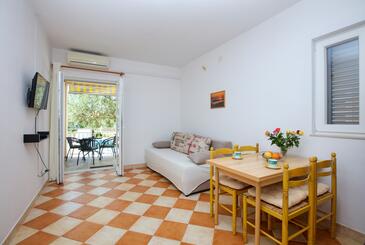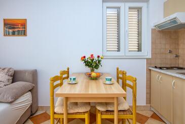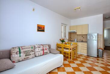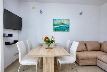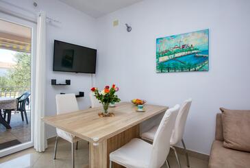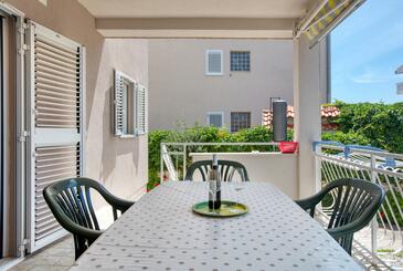 Ferienwohnung bietet Platz für 5 Gäste. Die Betten sind in Schlafzimmern, die es 2 gibt, und in Wohnzimmer, innerhalb einer Gesamtfläche von 44m2, angeordnet. Die Gäste haben eine eigene Terrasse zur Verfügung, auf der sie in warmen Sommernächten genießen können. Es ist erlaubt, Speisen auf dem Gemeinschafts-Grill vorzubereiten.