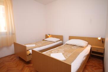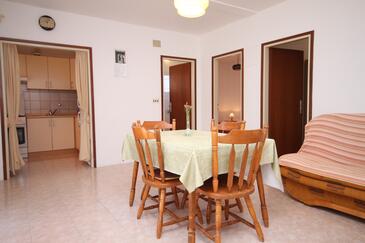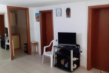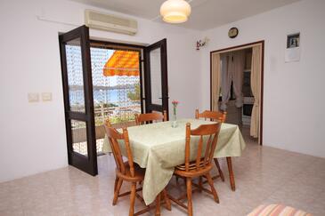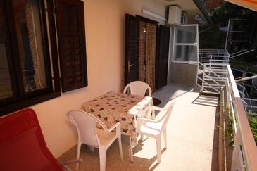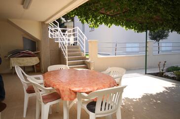 Ferienwohnung bietet Platz für 4 Gäste. Die Betten sind in Schlafzimmern, die es 2 gibt, innerhalb einer Gesamtfläche von 47m2, angeordnet. Die Gäste haben eine eigene Terrasse zur Verfügung, auf der sie in warmen Sommernächten genießen können. Das Apartment bietet Meerblick. Es ist erlaubt, Speisen auf dem Gemeinschafts-Grill vorzubereiten.