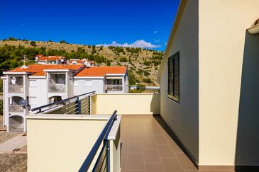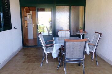 Ferienwohnung bietet Platz für 3 Gäste. Die Betten sind in Schlafzimmern, die es 1 gibt, innerhalb einer Gesamtfläche von 34m2, angeordnet. Die Gäste haben eine eigene Terrasse zur Verfügung, auf der sie in warmen Sommernächten genießen können. Das Apartment bietet Meerblick. Es ist erlaubt, Speisen auf dem Gemeinschafts-Grill vorzubereiten.