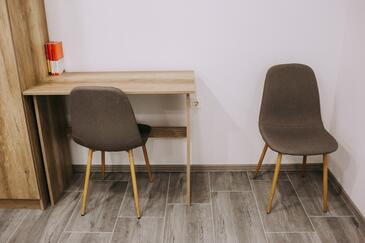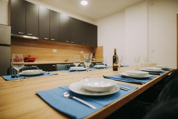 Haus bietet Platz für 12 Gäste. Die Betten sind in Schlafzimmern, die es 4 gibt, innerhalb einer Gesamtfläche von 154m2, angeordnet. Die Gäste haben eine eigene Terrasse zur Verfügung, auf der sie in warmen Sommernächten genießen können. Für vollen Genuss und Entspannung gibt es einen privaten Grill für Gäste dieser Unterkunft.