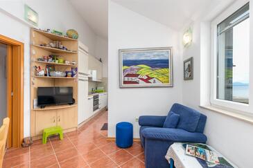 Ferienwohnung bietet Platz für 4 Gäste. Die Betten sind in Schlafzimmern, die es 2 gibt, innerhalb einer Gesamtfläche von 43m2, angeordnet. Die Gäste haben eine eigene Terrasse zur Verfügung, auf der sie in warmen Sommernächten genießen können. Das Apartment bietet Meerblick. Es ist erlaubt, Speisen auf dem Gemeinschafts-Grill vorzubereiten. In der gebuchten Unterkunftseinheit zahlt man am Ort ein Depositum ( der Preis ist an der Internetseite angeführt ).