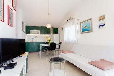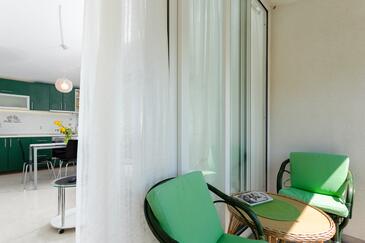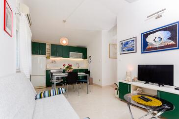 Ferienwohnung bietet Platz für 3 Gäste. Die Betten sind in Schlafzimmern, die es 1 gibt, und in Wohnzimmer, innerhalb einer Gesamtfläche von 42m2, angeordnet. Die Gäste haben einen eigenen Balkon zur Verfügung, auf der sie in warmen Sommernächten genießen können. Das Apartment bietet Meerblick. Es ist erlaubt, Speisen auf dem Gemeinschafts-Grill vorzubereiten. In der Unterkunftseinheit besteht die Möglichkeit des Mitbringens von Haustieren gegen Aufpreis.