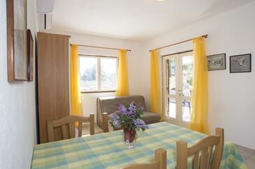 Ferienwohnung bietet Platz für 5 Gäste. Die Betten sind in Schlafzimmern, die es 2 gibt, und in Wohnzimmer, innerhalb einer Gesamtfläche von 47m2, angeordnet. Die Gäste haben eine eigene Terrasse zur Verfügung, auf der sie in warmen Sommernächten genießen können. Das Apartment bietet Meerblick. Es ist erlaubt, Speisen auf dem Gemeinschafts-Grill vorzubereiten.