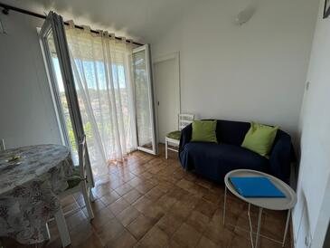 Ferienwohnung bietet Platz für 5 Gäste. Die Betten sind in Schlafzimmern, die es 3 gibt, innerhalb einer Gesamtfläche von 49m2, angeordnet. Die Gäste haben einen eigenen Balkon zur Verfügung, auf der sie in warmen Sommernächten genießen können. Das Apartment bietet Meerblick. Es ist erlaubt, Speisen auf dem Gemeinschafts-Grill vorzubereiten. In der Unterkunftseinheit besteht die Möglichkeit des Mitbringens von Haustieren gegen Aufpreis.