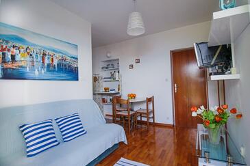 Ferienwohnung bietet Platz für 3 Gäste. Die Betten sind in Schlafzimmern, die es 1 gibt, und in Wohnzimmer, innerhalb einer Gesamtfläche von 27m2, angeordnet. Die Gäste haben einen eigenen Balkon zur Verfügung, auf der sie in warmen Sommernächten genießen können. Das Apartment bietet Meerblick. Es ist erlaubt, Speisen auf dem Gemeinschafts-Grill vorzubereiten.