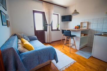 Ferienwohnung bietet Platz für 3 Gäste. Die Betten sind in Schlafzimmern, die es 1 gibt, und in Wohnzimmer, innerhalb einer Gesamtfläche von 27m2, angeordnet. Die Gäste haben einen eigenen Balkon zur Verfügung, auf der sie in warmen Sommernächten genießen können. Das Apartment bietet Meerblick. Es ist erlaubt, Speisen auf dem Gemeinschafts-Grill vorzubereiten.