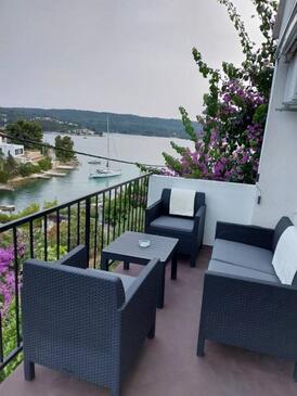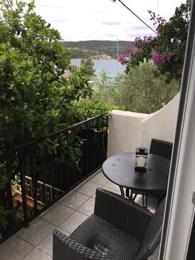 Ferienwohnung bietet Platz für 6 Gäste. Die Betten sind in Schlafzimmern, die es 3 gibt, und in Wohnzimmer, innerhalb einer Gesamtfläche von 56m2, angeordnet. Die Gäste haben eine eigene Terrasse zur Verfügung, auf der sie in warmen Sommernächten genießen können. Das Apartment bietet Meerblick. Es ist erlaubt, Speisen auf dem Gemeinschafts-Grill vorzubereiten. In der Unterkunftseinheit besteht die Möglichkeit des Mitbringens von Haustieren gegen Aufpreis.