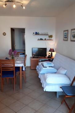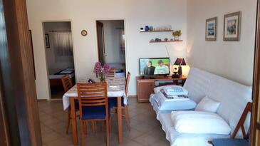 Ferienwohnung bietet Platz für 4 Gäste. Die Betten sind in Schlafzimmern, die es 2 gibt, innerhalb einer Gesamtfläche von 45m2, angeordnet. Die Gäste haben eine eigene Terrasse zur Verfügung, auf der sie in warmen Sommernächten genießen können. Das Apartment bietet Meerblick. Es ist erlaubt, Speisen auf dem Gemeinschafts-Grill vorzubereiten.