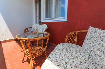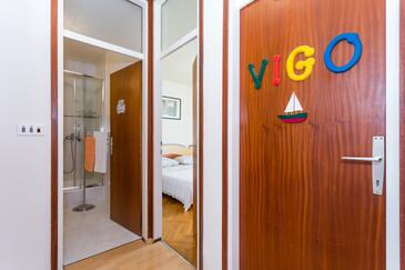 Ferienwohnung bietet Platz für 5 Gäste. Die Betten sind in Schlafzimmern, die es 3 gibt, innerhalb einer Gesamtfläche von 77m2, angeordnet. Die Gäste haben einen eigenen Balkon zur Verfügung, auf der sie in warmen Sommernächten genießen können.