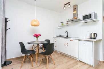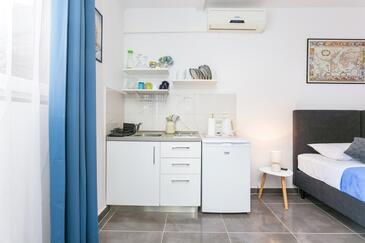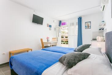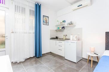 Studio bietet Platz für 2 Gäste. Die Betten sind in Schlafzimmern, die es 1 gibt, innerhalb einer Gesamtfläche von 21m2, angeordnet. Die Gäste haben eine eigene Terrasse zur Verfügung, auf der sie in warmen Sommernächten genießen können. Es ist erlaubt, Speisen auf dem Gemeinschafts-Grill vorzubereiten.