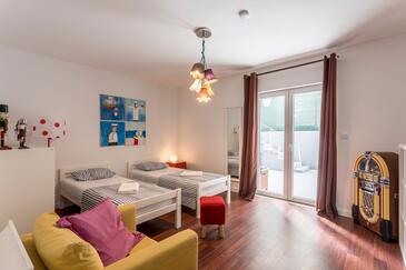 Ferienwohnung bietet Platz für 4 Gäste. Die Betten sind in Schlafzimmern, die es 3 gibt, innerhalb einer Gesamtfläche von 76m2, angeordnet. Die Gäste haben eine eigene Terrasse zur Verfügung, auf der sie in warmen Sommernächten genießen können. Für vollen Genuss und Entspannung gibt es einen privaten Grill für Gäste dieser Unterkunft. Während ihres Aufenthalts können sich Gäste im privaten Schwimmbad entspannen. In der Unterkunftseinheit besteht die Möglichkeit des Mitbringens von Haustieren, und die Dienstleistung ist im Preis der Unterkunft enthalten.