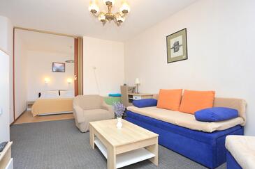 Ferienwohnung bietet Platz für 4 Gäste. Die Betten sind in Schlafzimmern, die es 1 gibt, und in Wohnzimmer, innerhalb einer Gesamtfläche von 44m2, angeordnet. Die Gäste haben eine eigene Terrasse zur Verfügung, auf der sie in warmen Sommernächten genießen können.