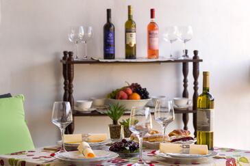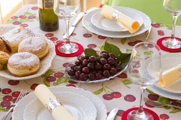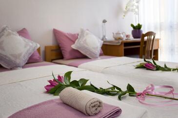 Ferienwohnung bietet Platz für 4 Gäste. Die Betten sind in Schlafzimmern, die es 2 gibt, innerhalb einer Gesamtfläche von 56m2, angeordnet. Die Gäste haben eine eigene Terrasse zur Verfügung, auf der sie in warmen Sommernächten genießen können.