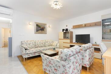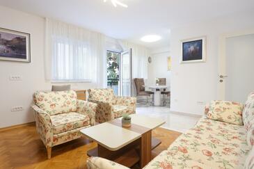 Ferienwohnung bietet Platz für 5 Gäste. Die Betten sind in Schlafzimmern, die es 2 gibt, und in Wohnzimmer, innerhalb einer Gesamtfläche von 61m2, angeordnet. Die Gäste haben einen eigenen Balkon zur Verfügung, auf der sie in warmen Sommernächten genießen können. In der gebuchten Unterkunftseinheit zahlt man am Ort ein Depositum ( der Preis ist an der Internetseite angeführt ).