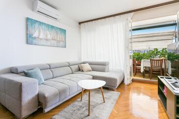 Ferienwohnung bietet Platz für 4 Gäste. Die Betten sind in Schlafzimmern, die es 1 gibt, und in Wohnzimmer, innerhalb einer Gesamtfläche von 46m2, angeordnet. Die Gäste haben eine eigene Terrasse zur Verfügung, auf der sie in warmen Sommernächten genießen können. Das Apartment bietet Meerblick.