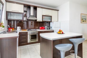 Ferienwohnung bietet Platz für 5 Gäste. Die Betten sind in Schlafzimmern, die es 3 gibt, innerhalb einer Gesamtfläche von 95m2, angeordnet. Die Gäste haben eine eigene Terrasse zur Verfügung, auf der sie in warmen Sommernächten genießen können. Das Apartment bietet Meerblick. Für vollen Genuss und Entspannung gibt es einen privaten Grill für Gäste dieser Unterkunft.