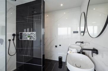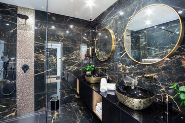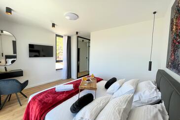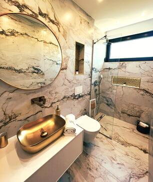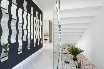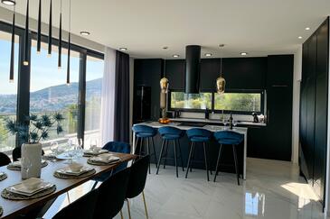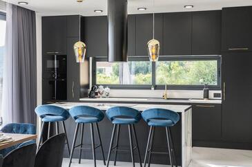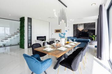 Haus bietet Platz für 10 Gäste. Die Betten sind in Schlafzimmern, die es 5 gibt, innerhalb einer Gesamtfläche von 241m2, angeordnet. Die Gäste haben eine eigene Terrasse zur Verfügung, auf der sie in warmen Sommernächten genießen können. Für vollen Genuss und Entspannung gibt es einen privaten Grill für Gäste dieser Unterkunft. Während ihres Aufenthalts können sich Gäste im privaten Schwimmbad entspannen. In der gebuchten Unterkunftseinheit zahlt man am Ort ein Depositum ( der Preis ist an der Internetseite angeführt ).