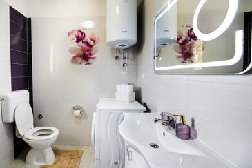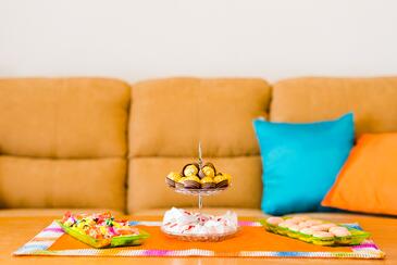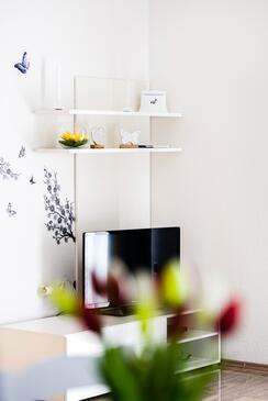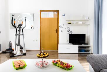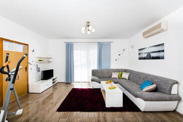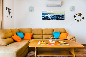 Ferienwohnung bietet Platz für 8 Gäste. Die Betten sind in Schlafzimmern, die es 3 gibt, und in Wohnzimmer, innerhalb einer Gesamtfläche von 79m2, angeordnet. Die Gäste haben eine eigene Terrasse zur Verfügung, auf der sie in warmen Sommernächten genießen können. Das Apartment bietet Meerblick. Es ist erlaubt, Speisen auf dem Gemeinschafts-Grill vorzubereiten. Während ihres Aufenthalts können Gäste das gemeinsam zur Nutzung stehende Schwimmbad benutzen. In der Unterkunftseinheit besteht die Möglichkeit des Mitbringens von Haustieren, und die Dienstleistung ist im Preis der Unterkunft enthalten.