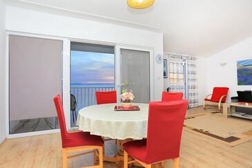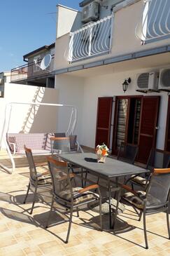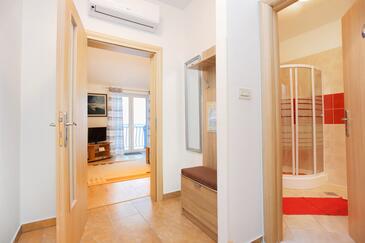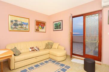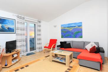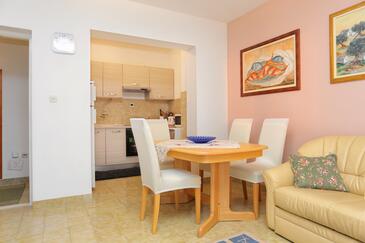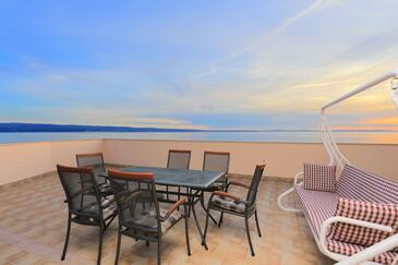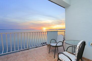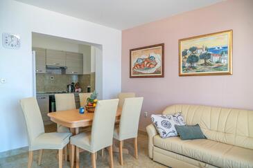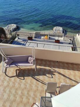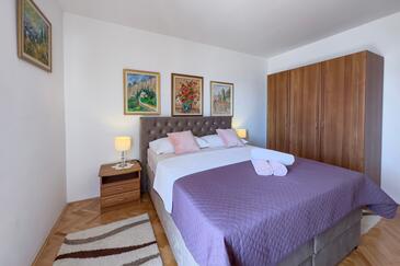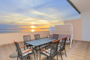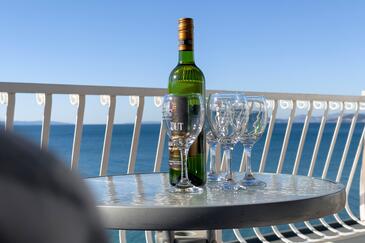 Ferienwohnung bietet Platz für 4 Gäste. Die Betten sind in Schlafzimmern, die es 2 gibt, innerhalb einer Gesamtfläche von 68m2, angeordnet. Die Gäste haben eine eigene Terrasse zur Verfügung, auf der sie in warmen Sommernächten genießen können. Das Apartment bietet Meerblick. Es ist erlaubt, Speisen auf dem Gemeinschafts-Grill vorzubereiten.