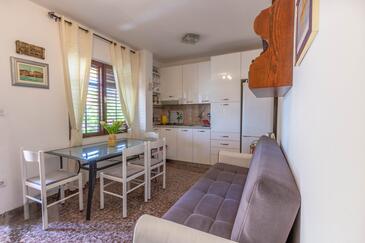 Ferienwohnung bietet Platz für 5 Gäste. Die Betten sind in Schlafzimmern, die es 2 gibt, und in Wohnzimmer, innerhalb einer Gesamtfläche von 53m2, angeordnet. Die Gäste haben eine eigene Terrasse zur Verfügung, auf der sie in warmen Sommernächten genießen können. Für vollen Genuss und Entspannung gibt es einen privaten Grill für Gäste dieser Unterkunft. In der Unterkunftseinheit besteht die Möglichkeit des Mitbringens von Haustieren gegen Aufpreis.