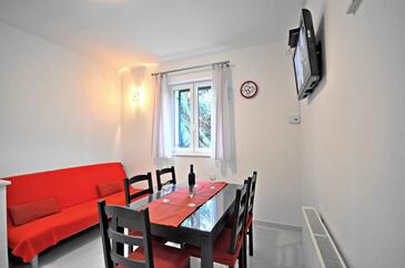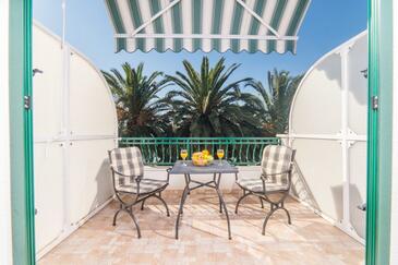 Ferienwohnung bietet Platz für 4 Gäste. Die Betten sind in Schlafzimmern, die es 2 gibt, innerhalb einer Gesamtfläche von 47m2, angeordnet. Die Gäste haben eine eigene Terrasse zur Verfügung, auf der sie in warmen Sommernächten genießen können. Das Apartment bietet Meerblick. Es ist erlaubt, Speisen auf dem Gemeinschafts-Grill vorzubereiten.