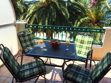 Ferienwohnung bietet Platz für 4 Gäste. Die Betten sind in Schlafzimmern, die es 2 gibt, innerhalb einer Gesamtfläche von 47m2, angeordnet. Die Gäste haben eine eigene Terrasse zur Verfügung, auf der sie in warmen Sommernächten genießen können. Das Apartment bietet Meerblick. Es ist erlaubt, Speisen auf dem Gemeinschafts-Grill vorzubereiten.