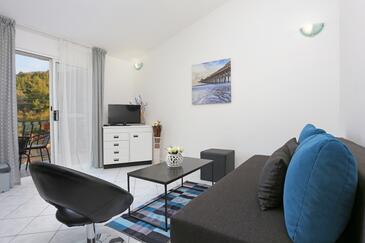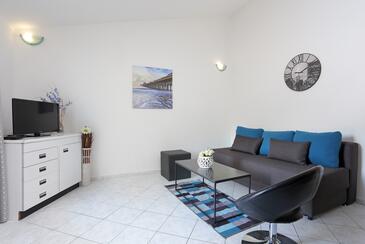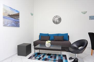 Ferienwohnung bietet Platz für 5 Gäste. Die Betten sind in Schlafzimmern, die es 1 gibt, und in Wohnzimmer, innerhalb einer Gesamtfläche von 45m2, angeordnet. Die Gäste haben einen eigenen Balkon zur Verfügung, auf der sie in warmen Sommernächten genießen können. Das Apartment bietet Meerblick.