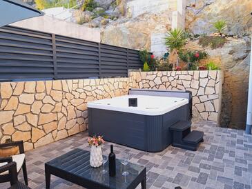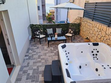 Ferienwohnung bietet Platz für 8 Gäste. Die Betten sind in Schlafzimmern, die es 3 gibt, und in Wohnzimmer, innerhalb einer Gesamtfläche von 114m2, angeordnet. Die Gäste haben eine eigene Terrasse zur Verfügung, auf der sie in warmen Sommernächten genießen können. Das Apartment bietet Meerblick. Es ist erlaubt, Speisen auf dem Gemeinschafts-Grill vorzubereiten.